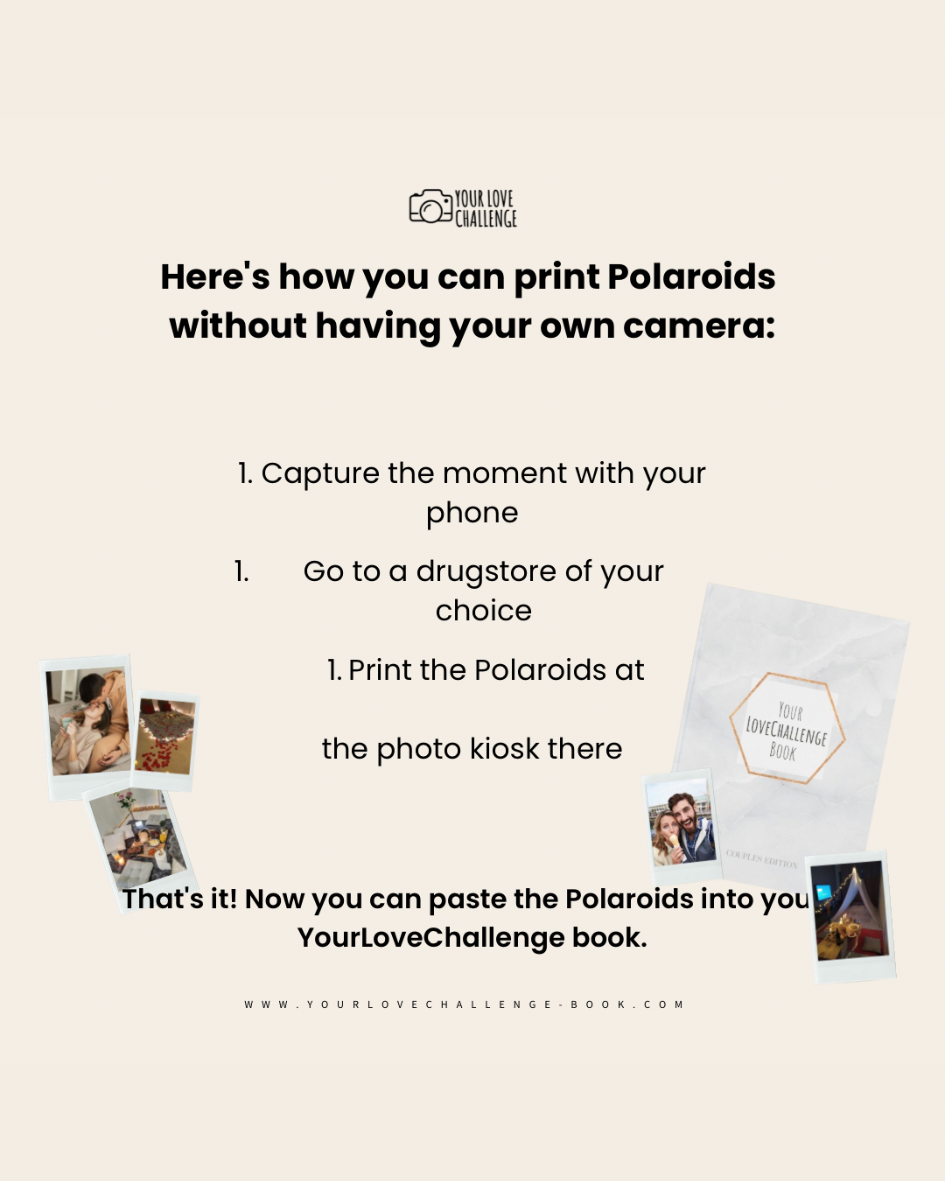 Of course, you can print your digital photos in Polaroid format. Just go to a photo printer in a drugstore in your city, connect your phone, and print your images in "Polaroid Format" to use them in your book!