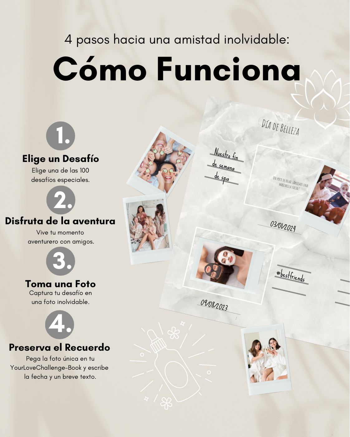 Revitaliza tu amistad con este libro lleno de retos únicos. Fortalece vuestro lazo compartiendo nuevas empresas y conservando momentos inolvidables.