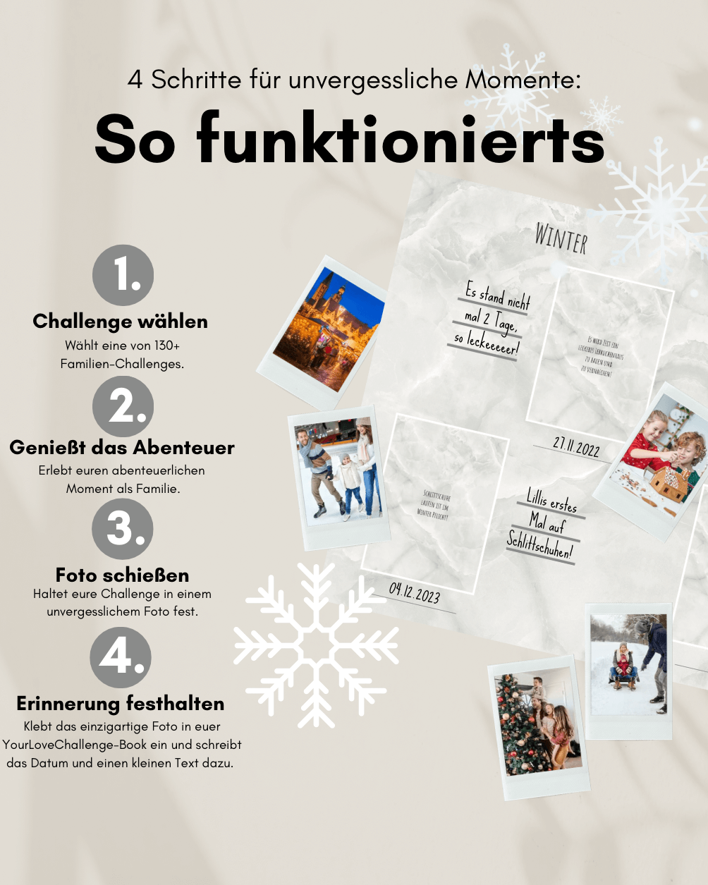 Willkommen bei YourLoveChallenge! Evelin und Daniel, die Gründer, bieten euch überraschende Herausforderungen und unvergessliche Erinnerungen – das Geheimrezept für das Familienleben, das sich jeder wünscht. Unsere Challenge Bücher stecken voller abwechslungsreicher Ideen, um euer Familienleben zu bereichern und gemeinsame Erlebnisse zu fördern. Gestaltet gemeinsam euer Erinnerungsbuch und entdeckt neue Facetten eurer Familie. 💖