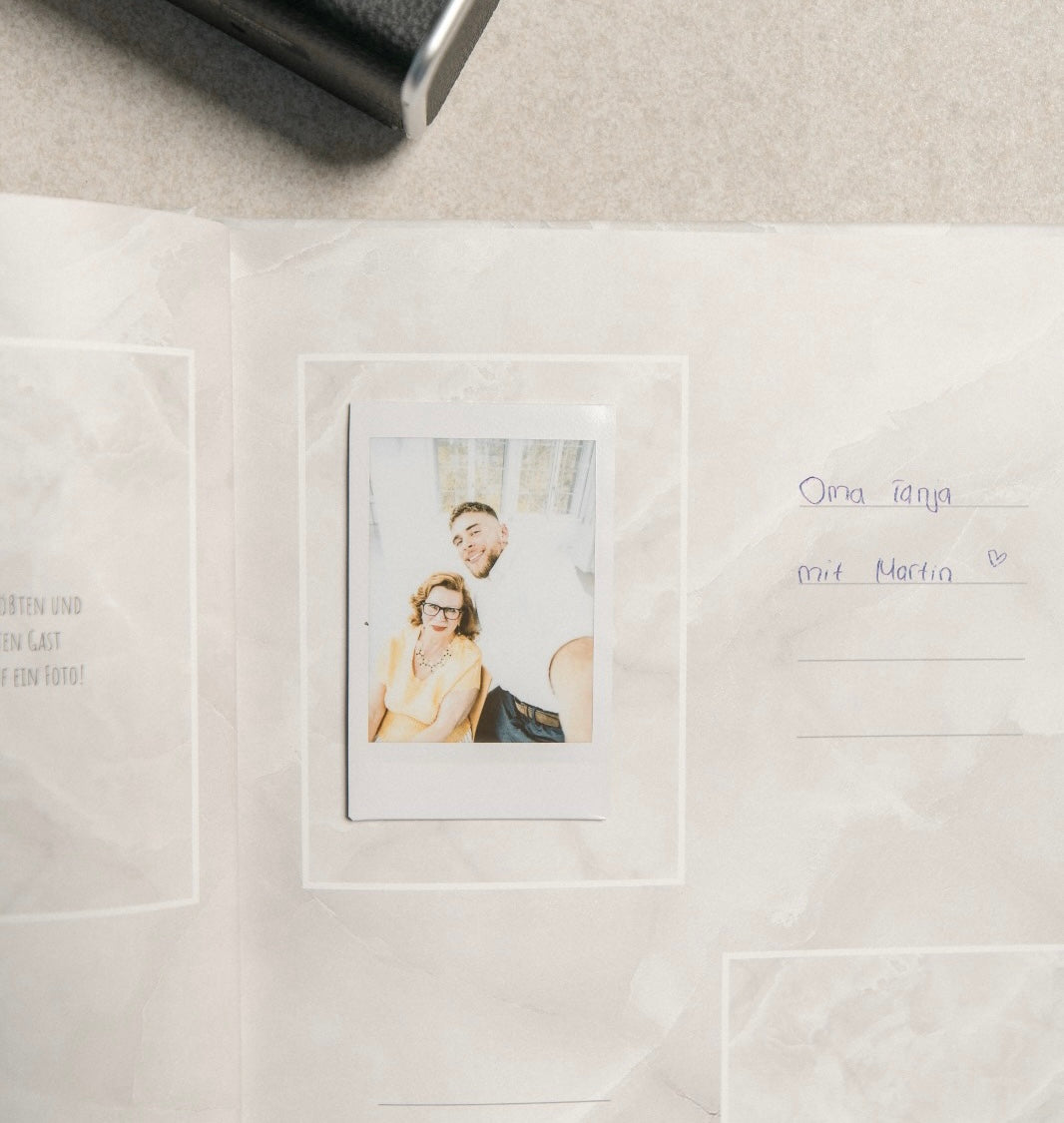 Die Gäste halten erfüllte Aufgaben auf Polaroid-Fotos fest und gestalten so ein einzigartiges Hochzeitsfotoalbum aus ihrer Perspektive! Beinhaltet Aufgaben wie